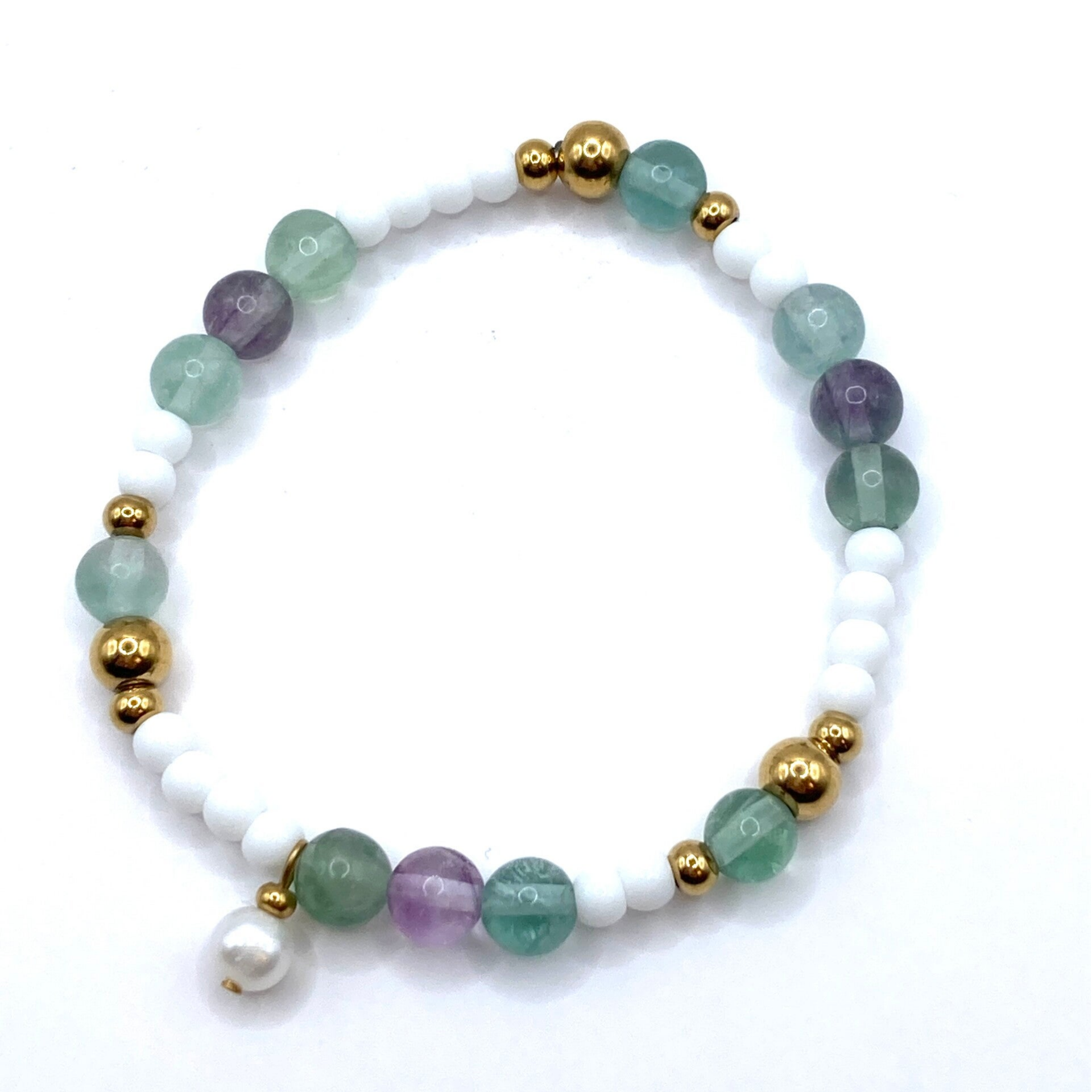 Flexibles Armband mit Fluorid Edelsteinen, Süßwasserzuchtperle & 18k IP-vergoldetem Edelstahl