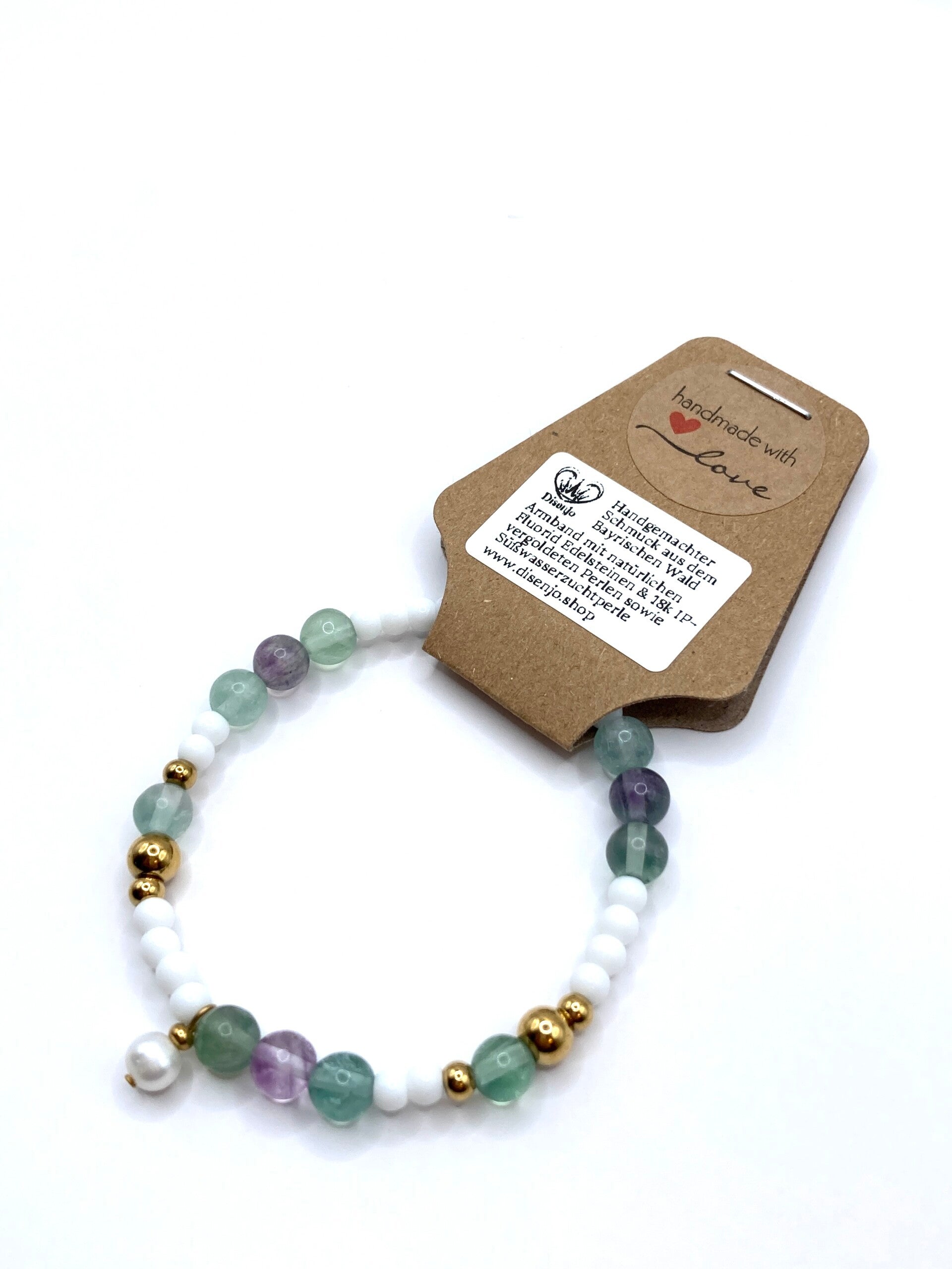 Die Kombination aus Fluorit-Edelsteinen, die für ihre beruhigenden Eigenschaften bekannt sind, und der strahlenden Süßwasserzuchtperle macht dieses Schmuckstück zu einem perfekten Begleiter für jeden Anlass. Für Dich selbst oder überrasche einen geliebten Menschen mit diesem einzigartigen Armband, das Schönheit und Stil in einem vereint!