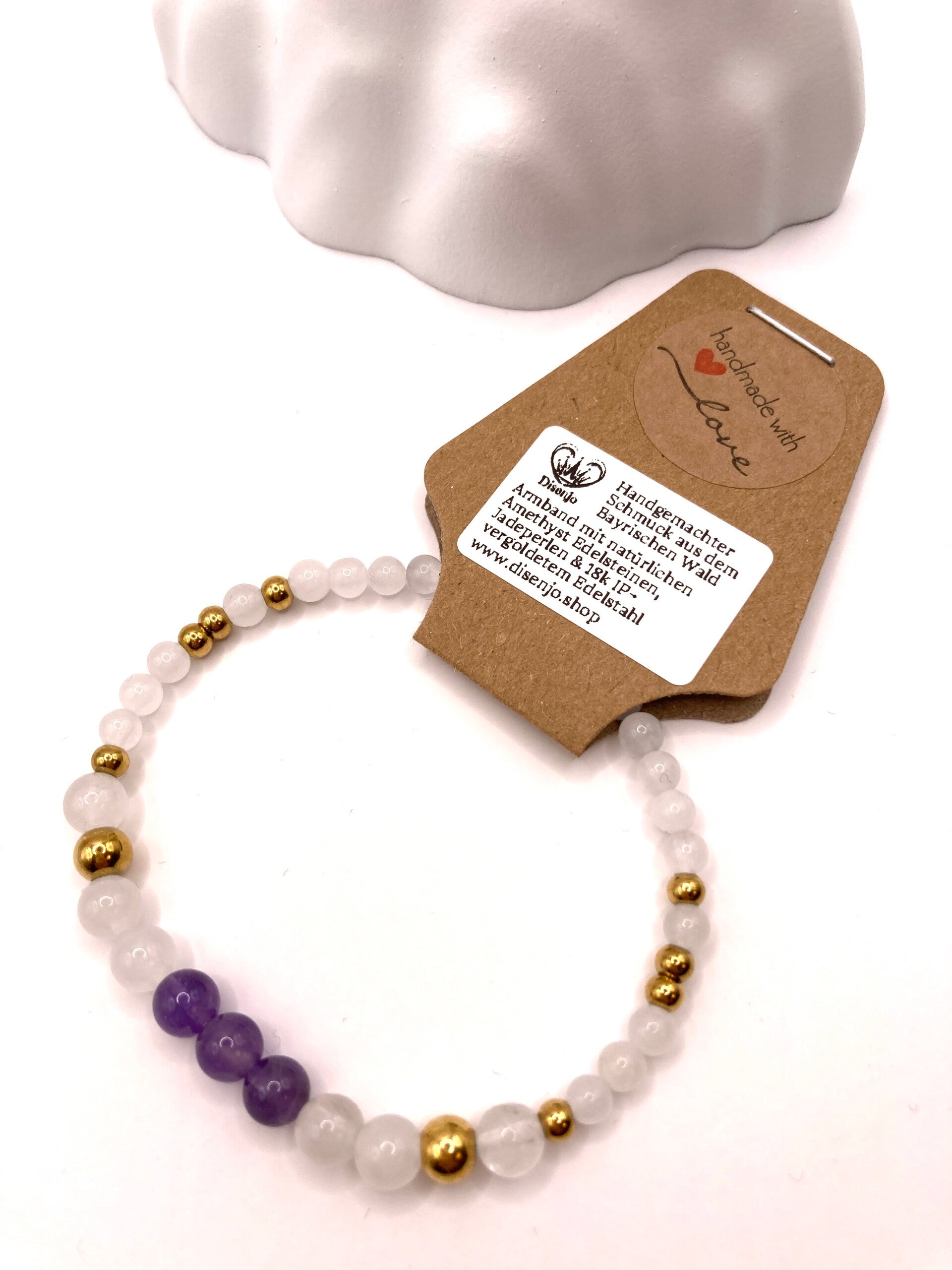 - Material: Edelstahl 304 mit 18k IP-Vergoldung , natürliche Amethyst Edelsteine und weiße Jade