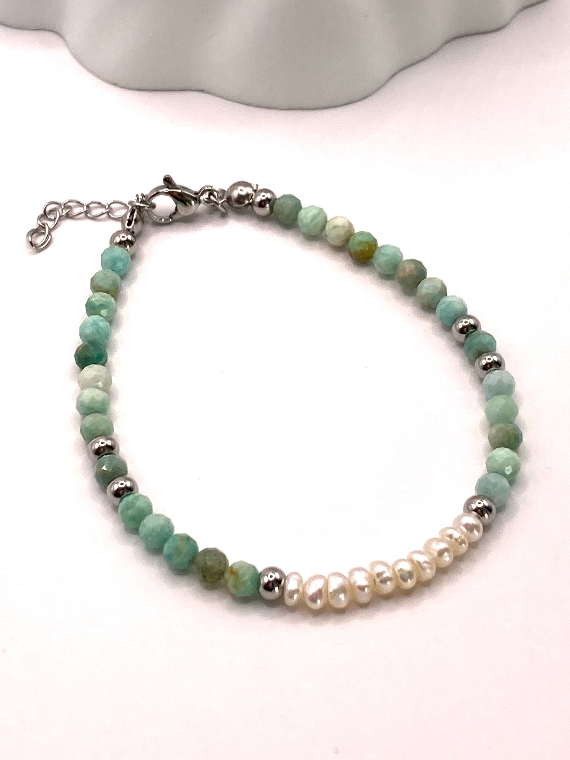 Armband mit Amazonit, Süßwasserzuchtperlen & Edelstahl