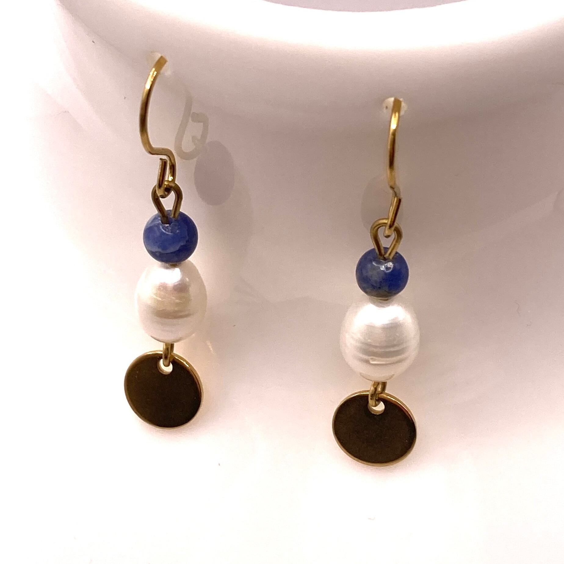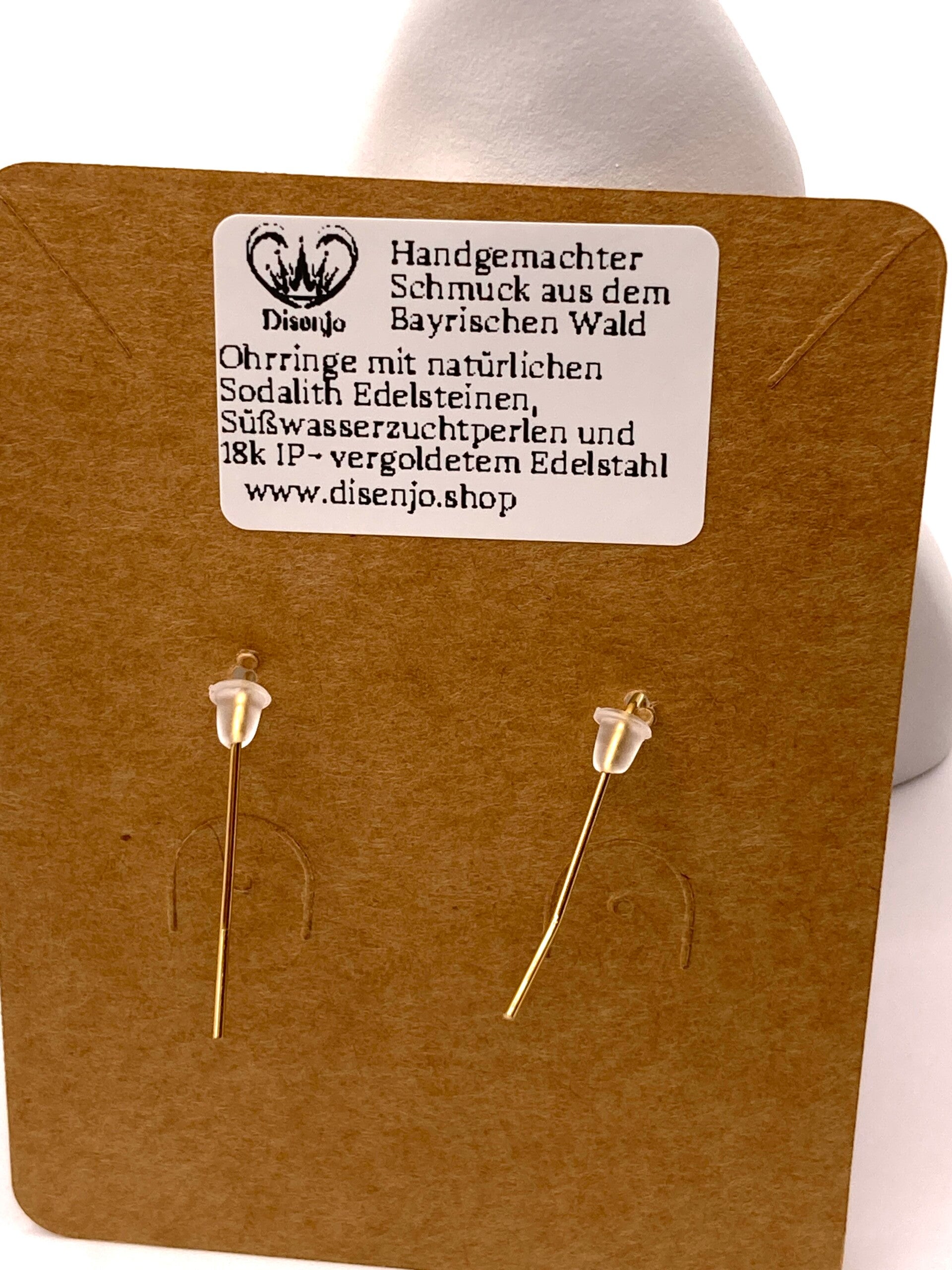 Ohrringe mit Sodalith, Süßwasserzuchtperlen & 18k IP-vergoldetem Edelstahl