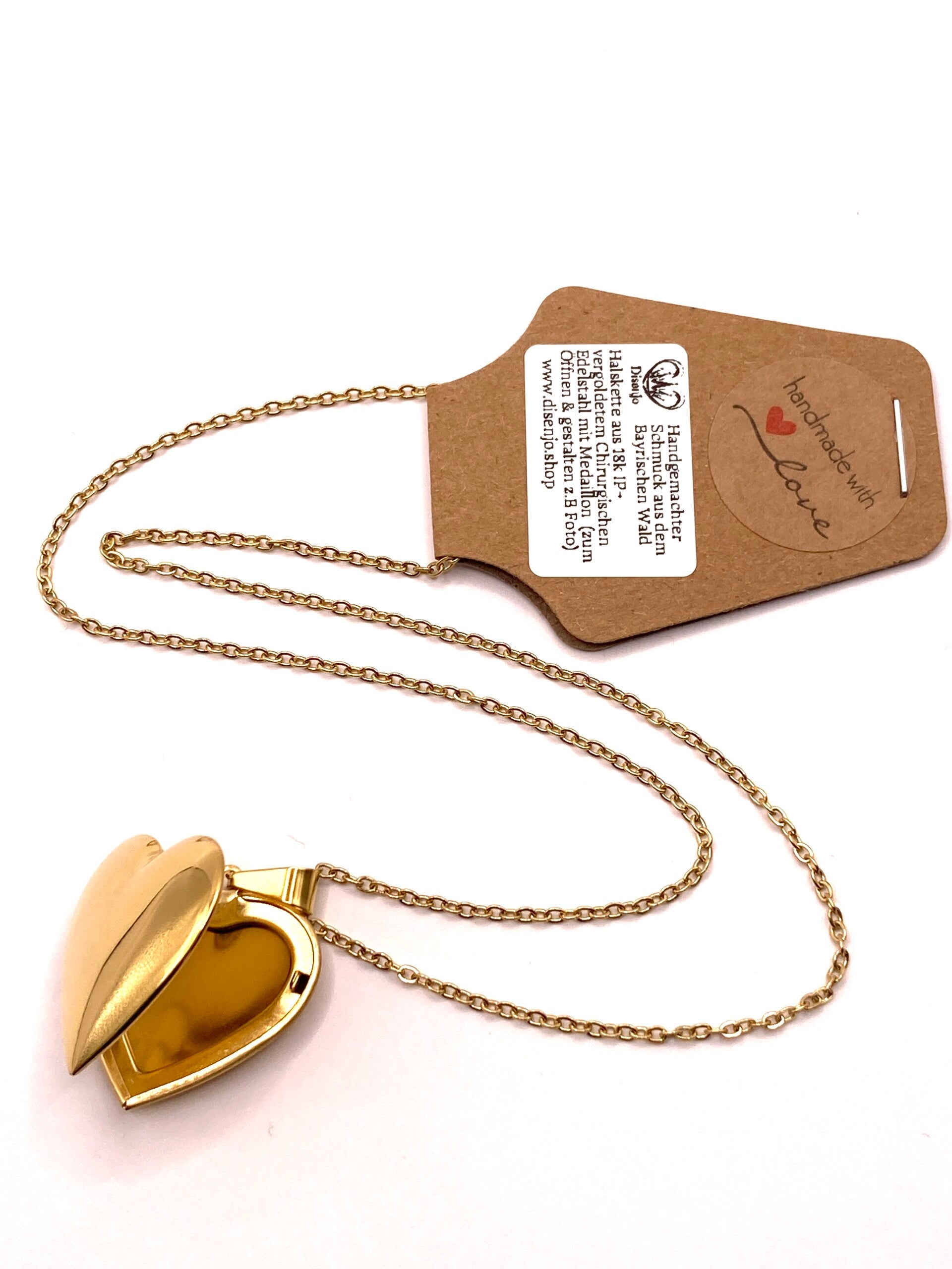 Herz-Medaillon- Halskette mit 18k IP-vergoldetem Chirurgischem Edelstahl